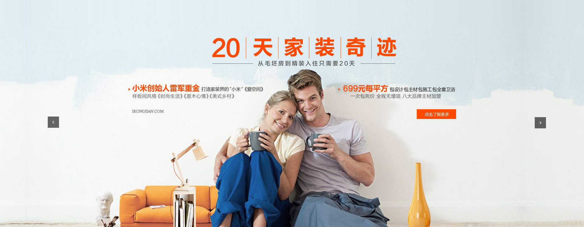 Achieved LeiJun Risk Investment Successfully in 7 Months,Jumped to become the leading brand for Home Decoration Ever since the company was founded,we have consistently collaborated with lkongjian,to grow together,to perfectionalize the supply chain,gradually increase individual's influence and capabilities.In 2014,we assited lkongjian to enter Tmall,successfully entered the November 11 sales opportunity after 3 months of determination and hardships.